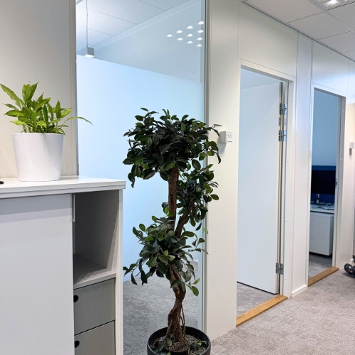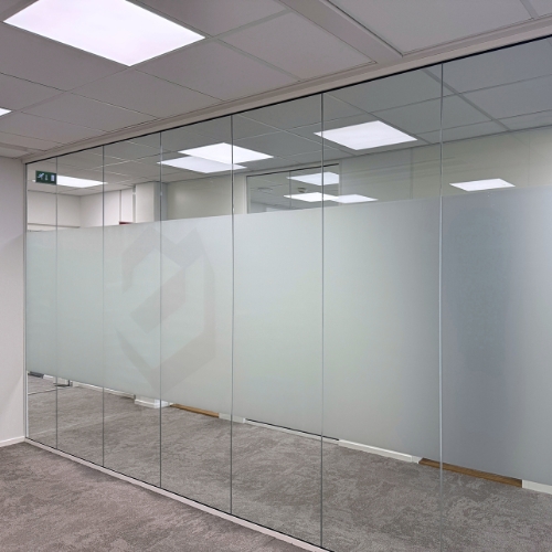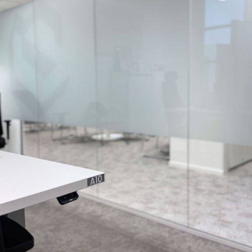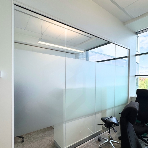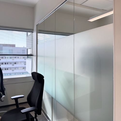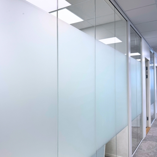 Toimitilateippaus tuo lasiseiniin modernia ilmettä ja näkösuojaa työtilojen jakamiseen
